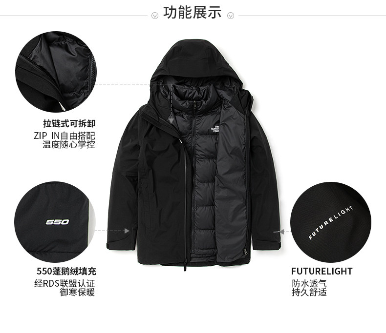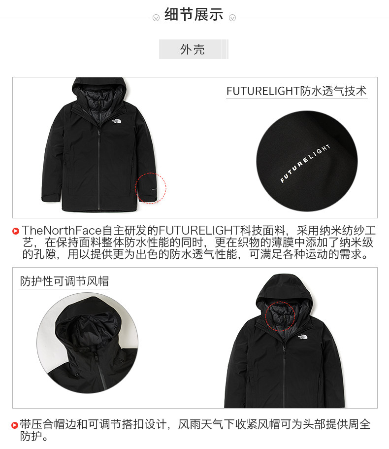 下M下TheNorthFace北面三合一冲锋衣外套男户外防水保暖上新|4N9T