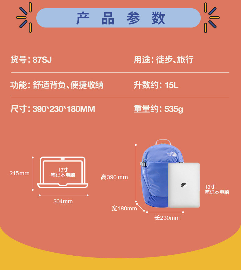 北面儿童舒适背负双肩背包书包户外便携新款TheNorthFace|87SJ