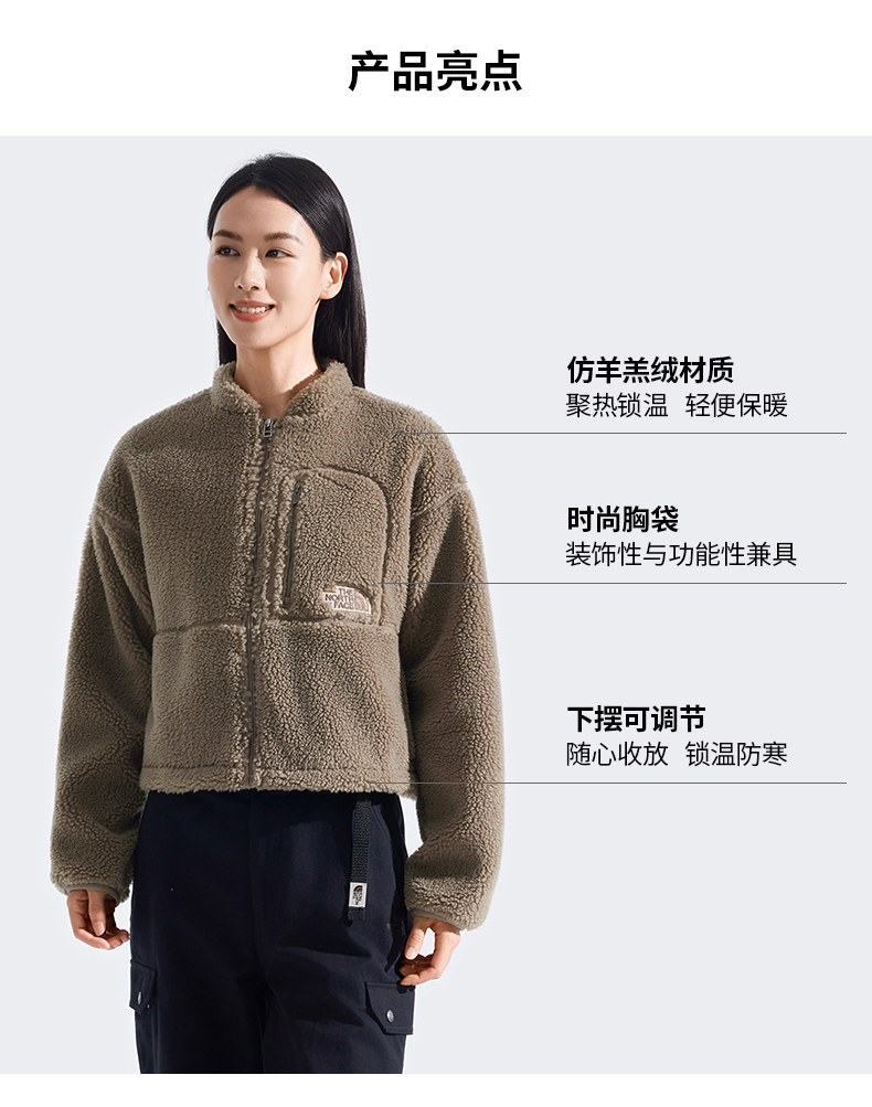 北面女Extreme Pile仿羊羔绒抓绒外套户外保暖TheNorthFace|8ESP